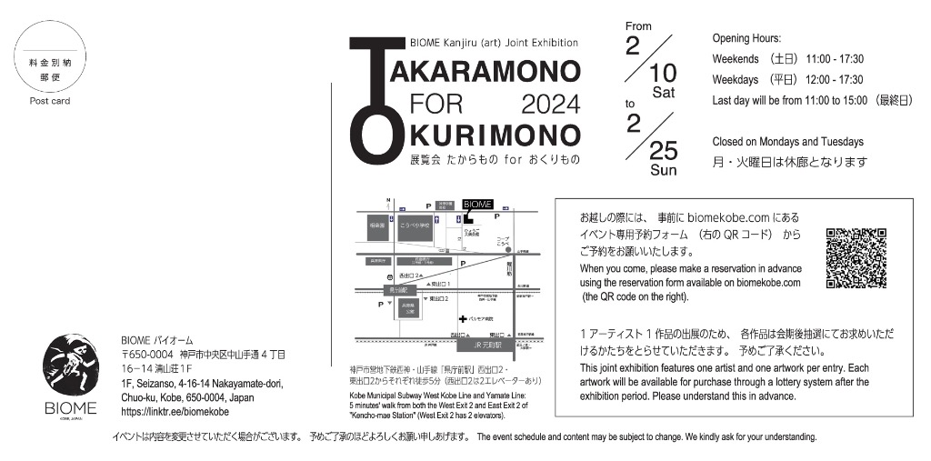 2月10日〜25日に神戸のアートギャラリーBIOMEさんにて展覧会があります!